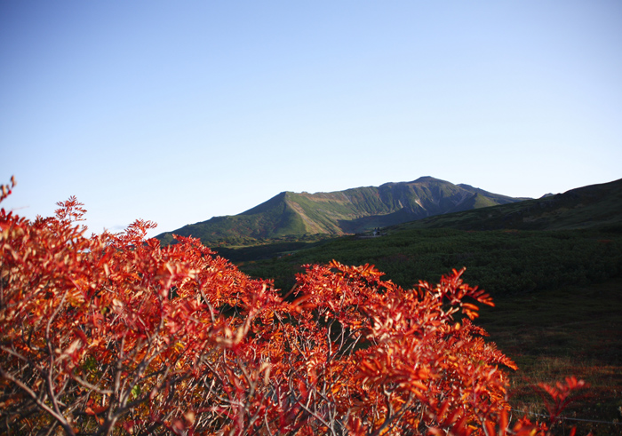 9月22日に旭岳に登りました。ロープウエイの姿見駅から夫婦沼に向かって登っていく途中で、紅葉の向こうに浮かぶ見事な大雪山連峰が目に飛び込んで 来たので、シャッターを切りました。爽やかな紅葉の秋を楽しみました。