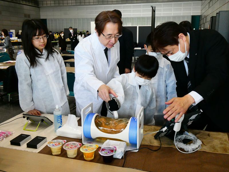 実際に医療現場で使用している、聴診器・超音波エコー・内視鏡等の医療機器や介護ロボットの体験を実施しました。